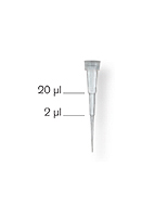 nano-cap? 吸頭專為超微量量程移液器設(shè)計,是分子生物學(xué)實驗,如PCR*的理想之選。吸頭長37 mm,吸頭尖有毛細管設(shè)計,即使移取0.1μl體積,也可由肉眼觀察到。吸頭尖的毛細管設(shè)計使其易于為各類電泳凝膠的泳道上樣。適用于最大量程20 μl的移液器。預(yù)裝吸頭無色透明,放置于一個灰色的吸頭托架上。