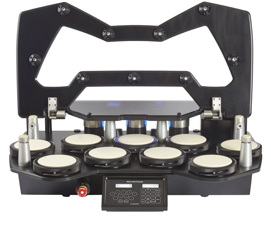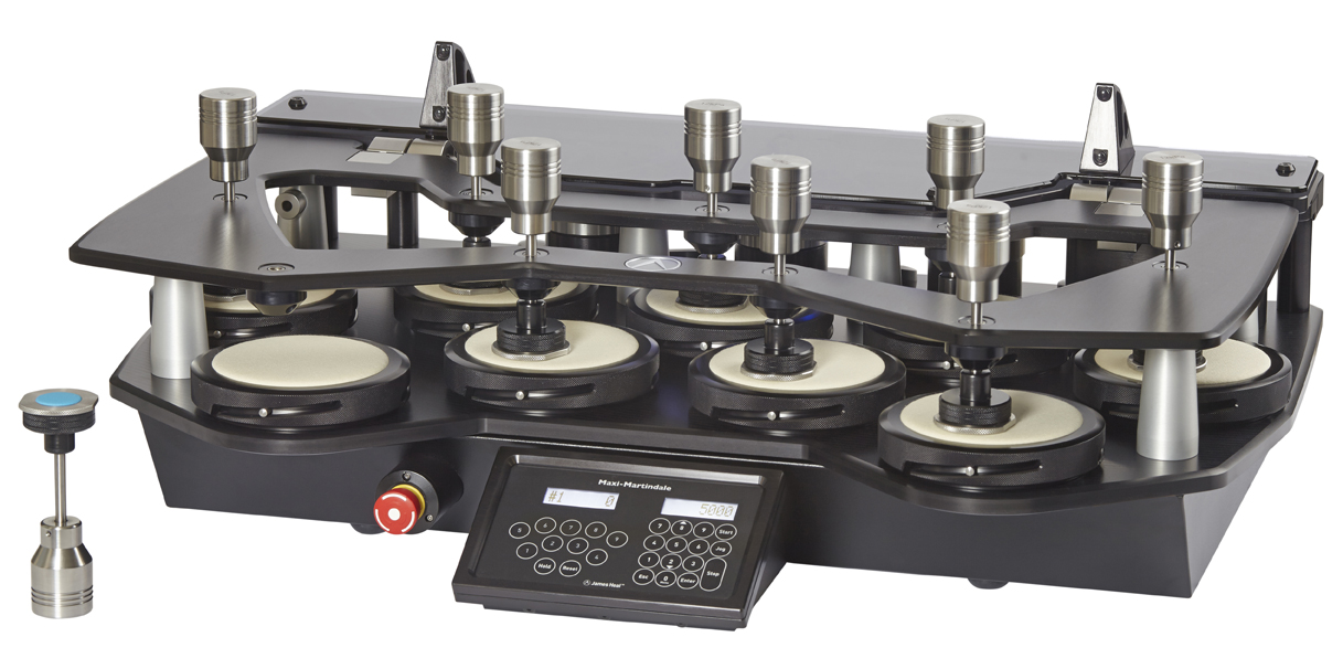馬丁代爾儀廣泛應(yīng)用于測(cè)試耐磨擦和起毛球試驗(yàn)。James Heal開(kāi)發(fā)了三個(gè)型號(hào)馬丁代爾儀,有9個(gè)測(cè)試頭、 5 個(gè)測(cè)試頭和2個(gè)測(cè)試頭三種選擇。